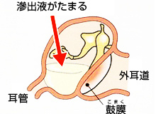 | 鼓膜の切開により滲出液を排出します。 |